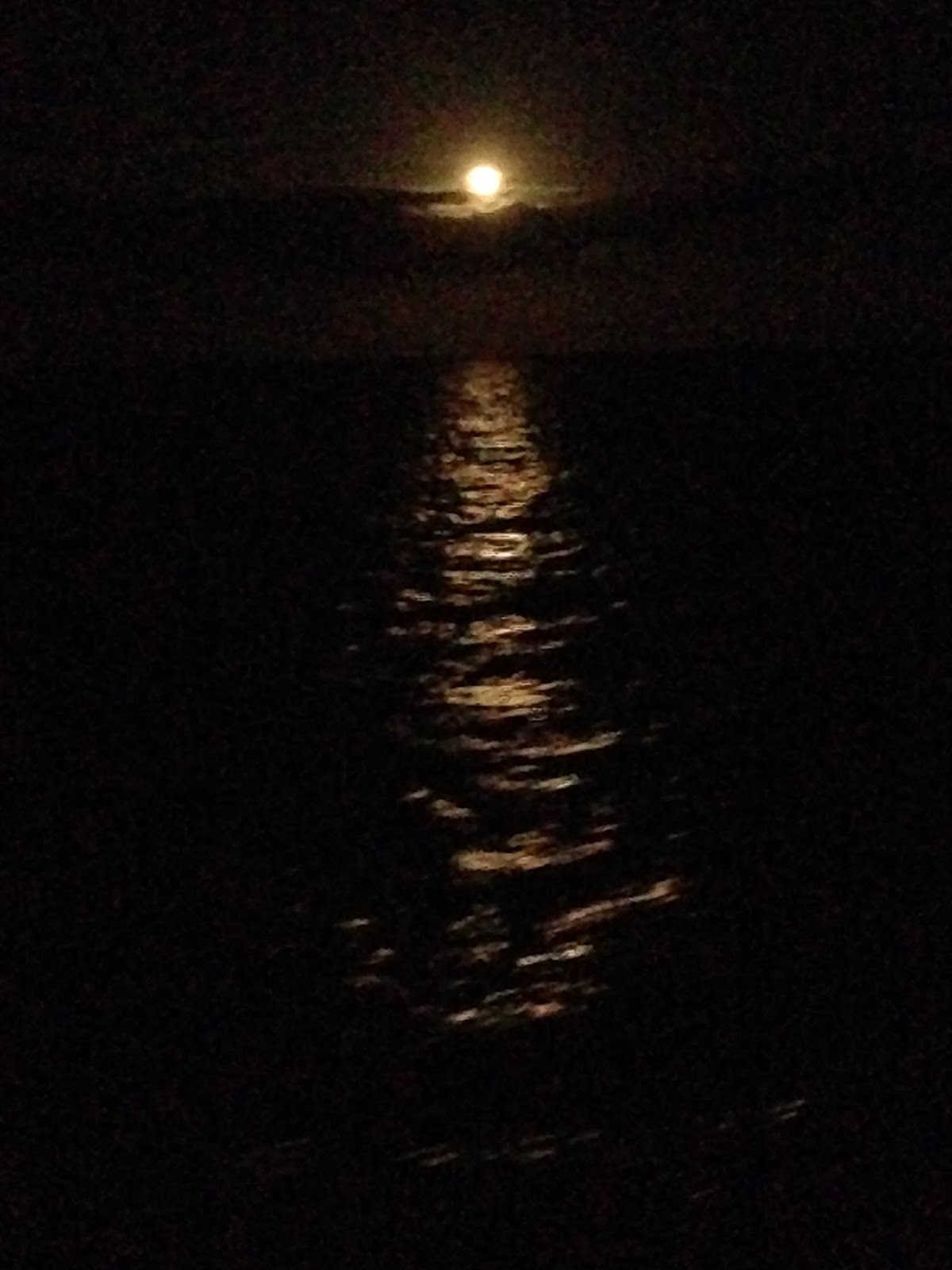 We enjoyed complete darkness for almost two hours before the large moon, just short of full, lit up the ocean for the remainder of the overnight crossing. The milky way with billions of stars was stunning. The harvest moon rose and gave us light all night long. No photos could reproduce any of this.